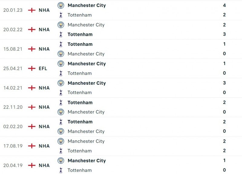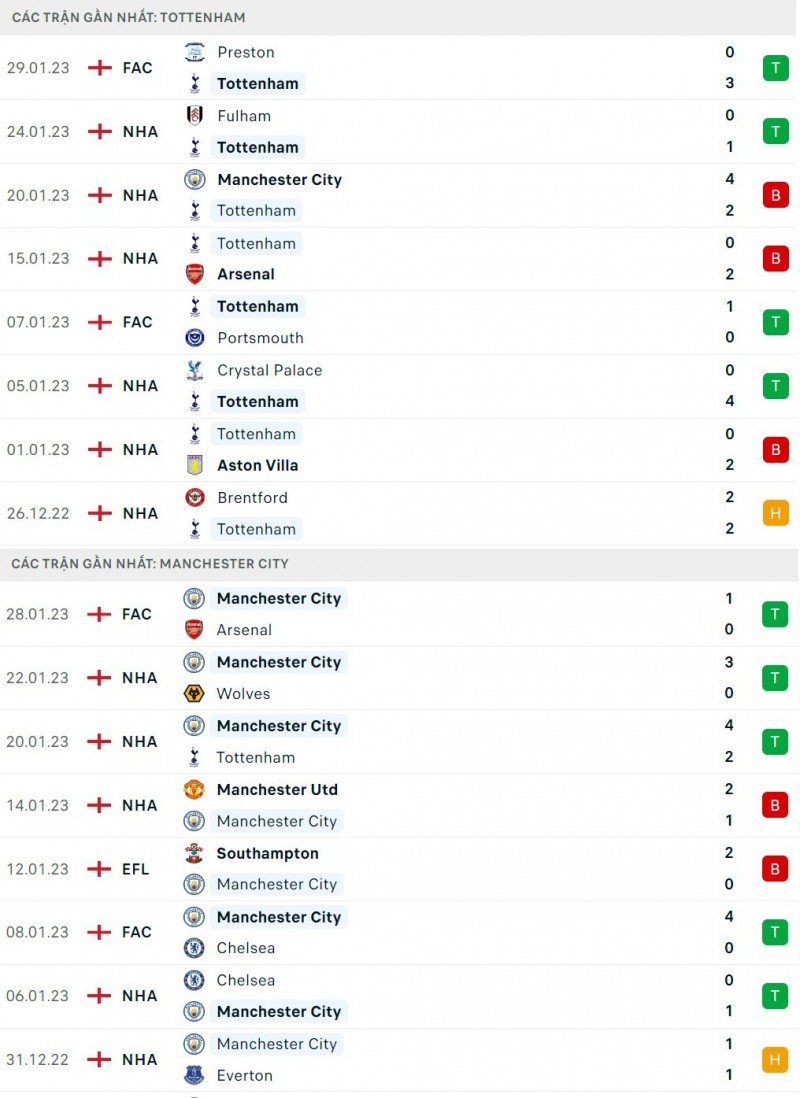 Nhìn lại 6 lần gặp nhau gần nhất giữa hai đội từ mùa giải 2020 đến nay thì mỗi bên đều đang giành được 3 chiến thắng. Nửa giải năm ngoái chứng kiến sự đi lên của Tottenham khi họ đã toàn thắng trước đoàn quân của HLV Pep Guardiola ở cả hai lượt đấu sân nhà/sân khách với các tỷ số 1-0 và 3-2.