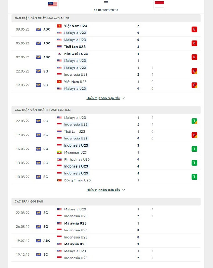 Phong độ, lịch sử đối đầu U23 Malaysia vs U23 Indonesia