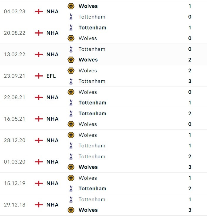 - Tottenham thắng 3/5 trận đối đầu gần đây với Wolves.