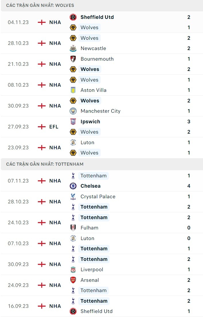 - 6/8 trận gần nhất của Tottenham có tối thiểu 3 bàn. 4/5 trận gần nhất của Wolves cũng có kịch bản tương tự.