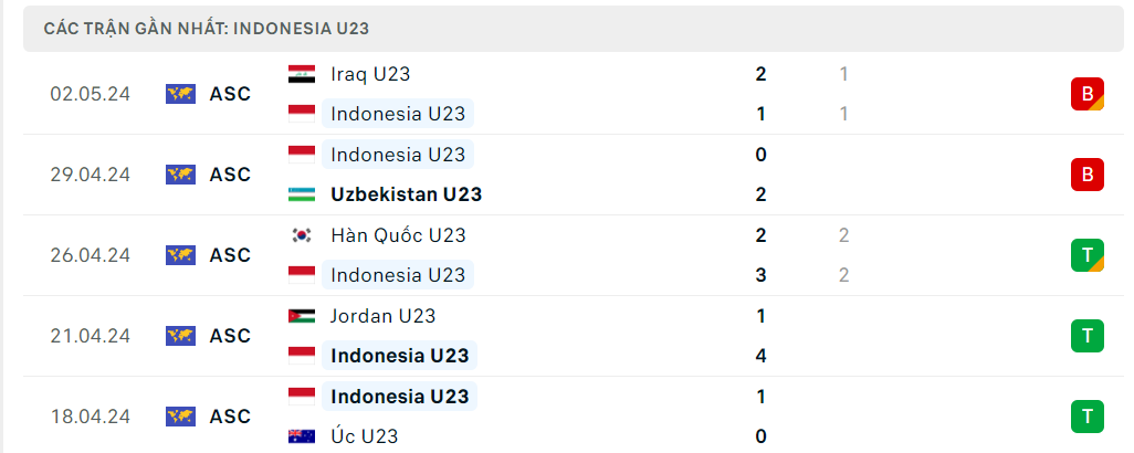 8/10 trận gần nhất của U23 Indonesia có ít hơn 3 bàn thắng được ghi.