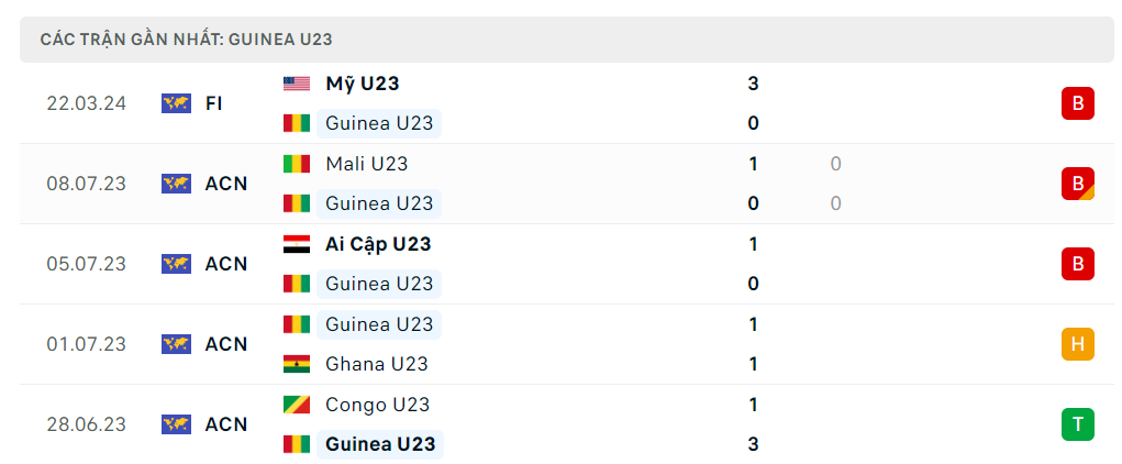 U23 Guinea không thắng trong 3 trận gần nhất.