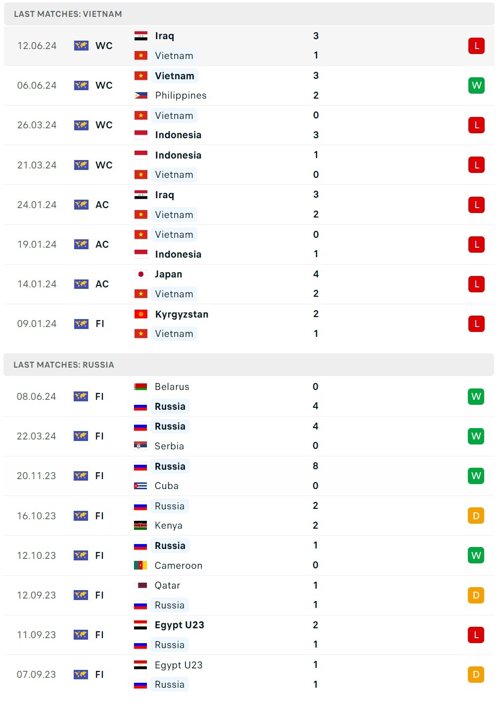 Trong trận đấu đầu tiên, đội tuyển Việt Nam sẽ chạm trán đối thủ Nga - đội bóng đang xếp hạng 33 thế giới theo bảng xếp hạng của Liên đoàn Bóng đá thế giới FIFA. Nga cũng là một đội tuyển thường xuyên góp mặt ở các vòng chung kết World Cup.