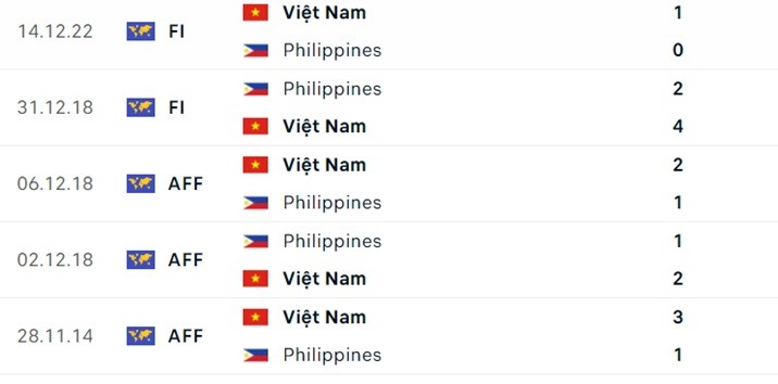 - Trong quá khứ, tuyển Việt Nam đã thắng 9, hòa 1 và để thua 2 trong 12 trận gặp Philippines.
