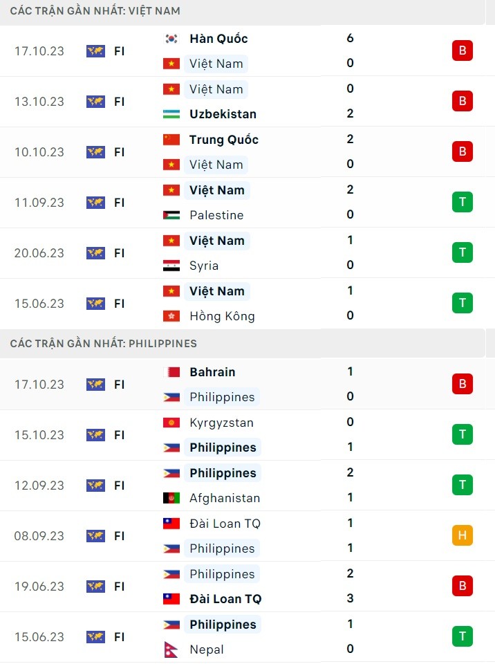 - Philippines thắng 2, hòa 1, thua 2 trong 5 trận gần nhất, ghi được 6 bàn và thủng lưới 6 bàn.