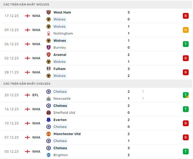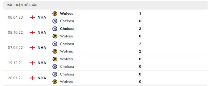 - Ngoài ra, 8/10 trận sân nhà gần đây của Wolves và 4/5 chuyến làm khác gần nhất của Chelsea cũng khép lại với ít nhất 1 bàn thắng cho mỗi đội.