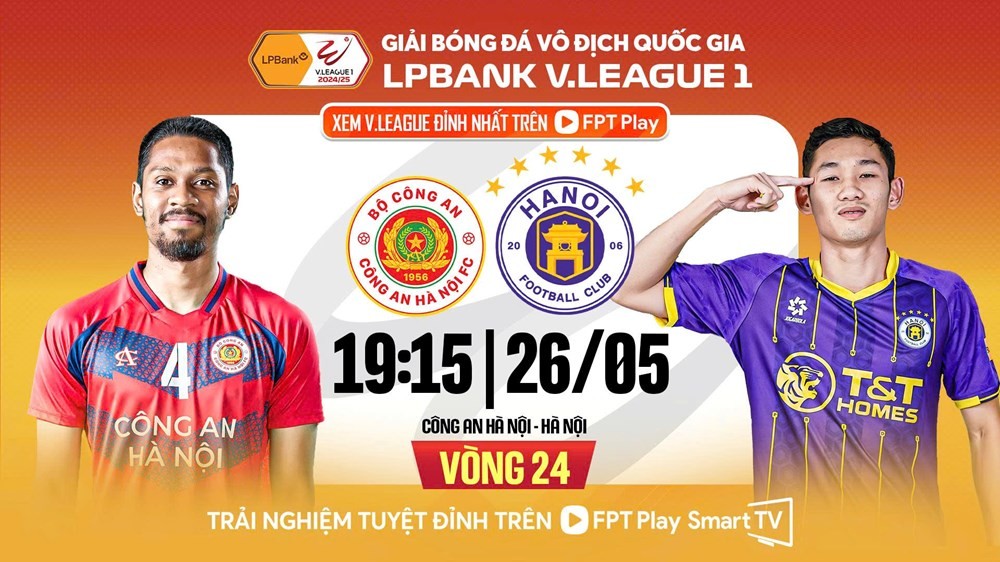 | Trận đấu giữa Công an Hà Nội và Hà Nội FC tại vòng 24 V-League sẽ diễn ra lúc 19h15 ngày 26/5. Ảnh: FPT |