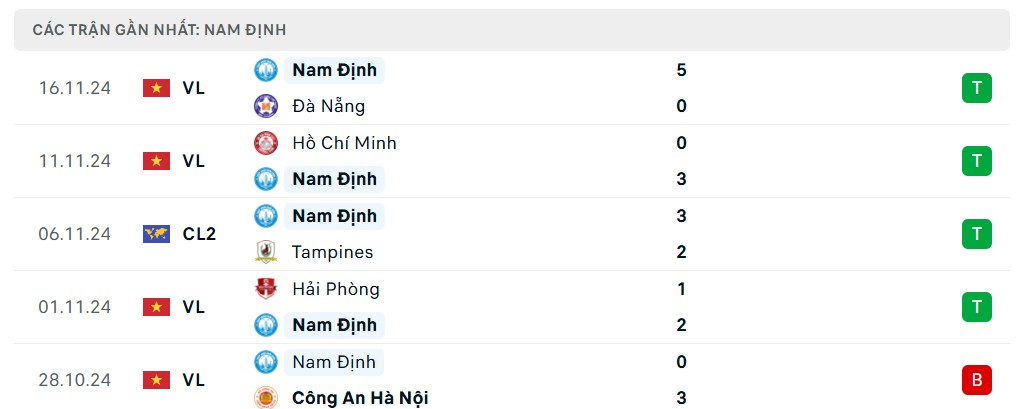 Sau một vài kết quả không tốt giai đoạn đầu mùa, Nam Định đang dần trở lại với quỹ đạo chiến thắng. 4 trận gần nhất, đội bóng thành Nam đã giành trọn 12 điểm tuyệt đối, ghi được 13 bàn thắng và chỉ để thủng lưới có 3 lần. Những kết quả trên đã giúp Nam Định vươn lên vị trí thứ 2 trên bảng xếp hạng, chỉ kém đội đầu bảng Thanh Hóa 1 điểm.