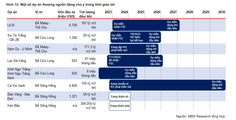 Nhận định về tiềm năng các dự án thượng nguồn, Công ty Cổ phần Chứng khoán MB (MBS) cho rằng, các dự án trong nước tạo cơ hội lớn cho các doanh nghiệp thượng nguồn ngành dầu khí.