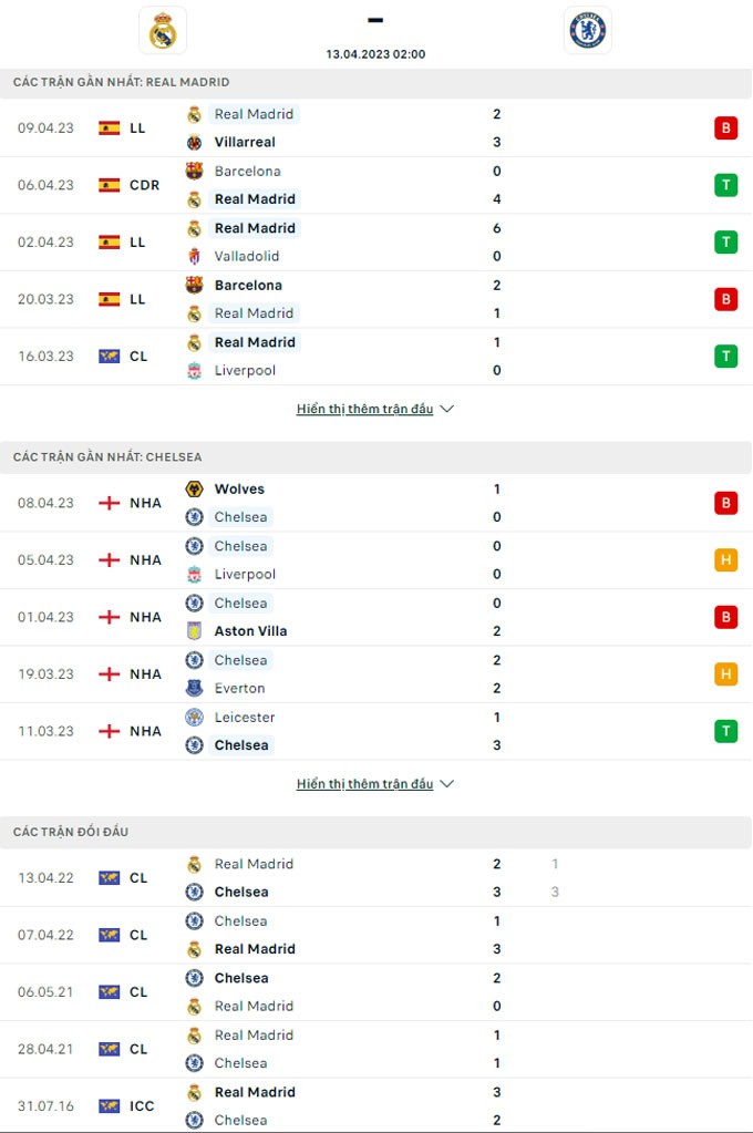 Lịch sử đối đầu và phong độ của Real Madrid & Chelsea |