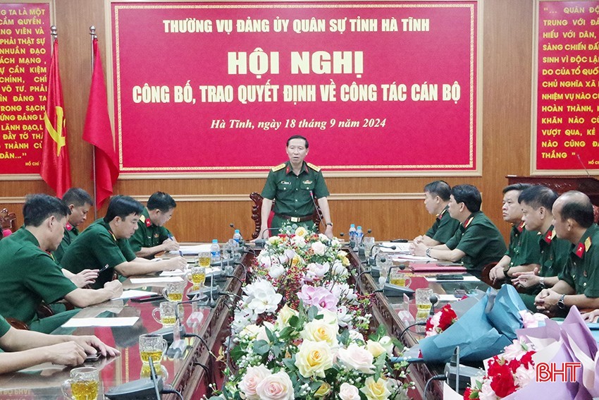 Ngày 18/9, Thường vụ Đảng ủy Quân sự tỉnh Hà Tĩnh tổ chức hội nghị công bố, trao quyết định về công tác cán bộ. Tại hội nghị, Thường vụ Đảng ủy - Thủ trưởng Bộ Chỉ huy quân sự tỉnh Hà Tĩnh đã công bố và trao các quyết định về điều động, bổ nhiệm cán bộ của Bộ Tư lệnh Quân khu 4 đối với 6 đồng chí.