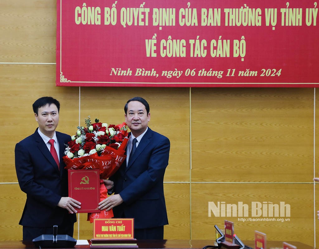 Tại hội nghị, lãnh đạo Ban Tổ chức Tỉnh uỷ đã công bố Quyết định của Ban Thường vụ Tỉnh uỷ về việc điều động, bổ nhiệm đồng chí Trương Xuân Hiếu, Uỷ viên Ban Thường vụ Thành uỷ, Chủ nhiệm Uỷ ban Kiểm tra Thành uỷ Ninh Bình giữ chức Phó Chánh Văn phòng Tỉnh uỷ, thời hạn bổ nhiệm 5 năm, kể từ ngày 6/11/2024.