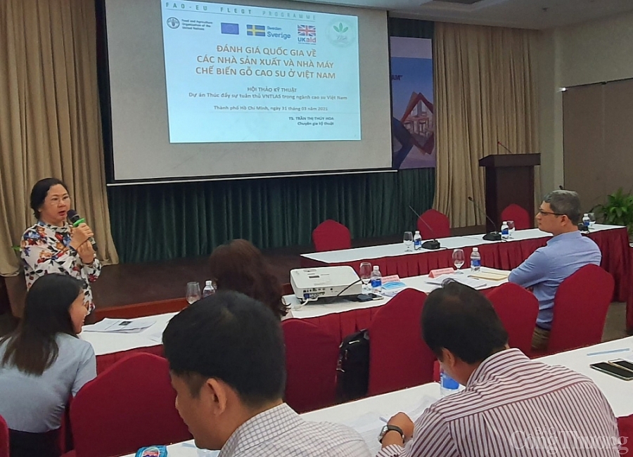 Báo cáo đánh giá việc tuân thủ các yêu cầu của VNTLAS trong 2 chuỗi cung ứng gỗ cao su tại Tây Ninh Và Bình Dương tại hội thảo, TS. Nguyễn Tử Kim - chuyên gia lâm nghiệp của dự án cho biết: kết quả khảo sát cho thấy 100% tiểu điền không biết về VPA/FLEGT và không biết các qui định VNTLAS trong hệ thống gỗ hợp pháp Việt Nam. Có tới 63% DN chưa nắm bắt được các yêu cầu của FLEGT/VPA và không đáp ứng được yêu cầu chứng minh nguồn gốc gỗ trong nước hợp pháp.