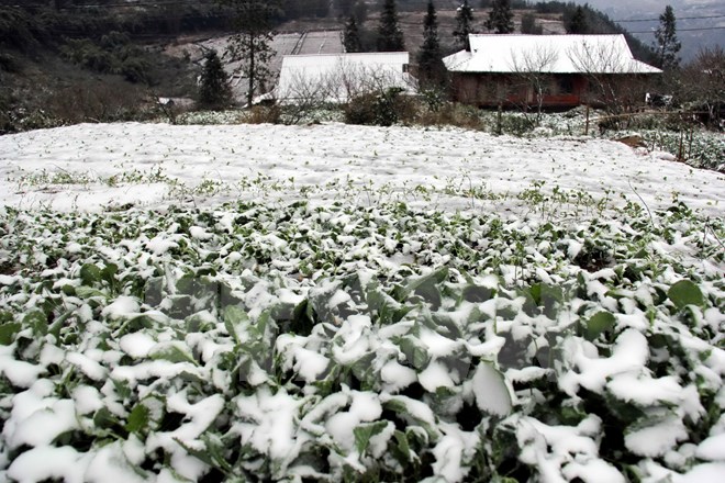 | Nhiều hécta hoa màu chìm trong tuyết lạnh đồng nghĩa với một vụ mùa thất thu của bà con vùng cao khi Tết Nguyên đán đã cận kề. (Ảnh: Quỳnh Trang/TTXVN) |