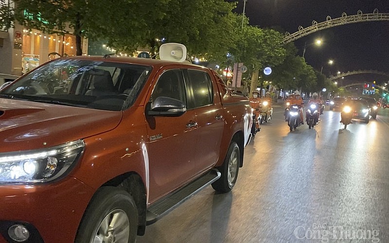 Phát loa trên phố kêu gọi người dân tiết kiệm điện