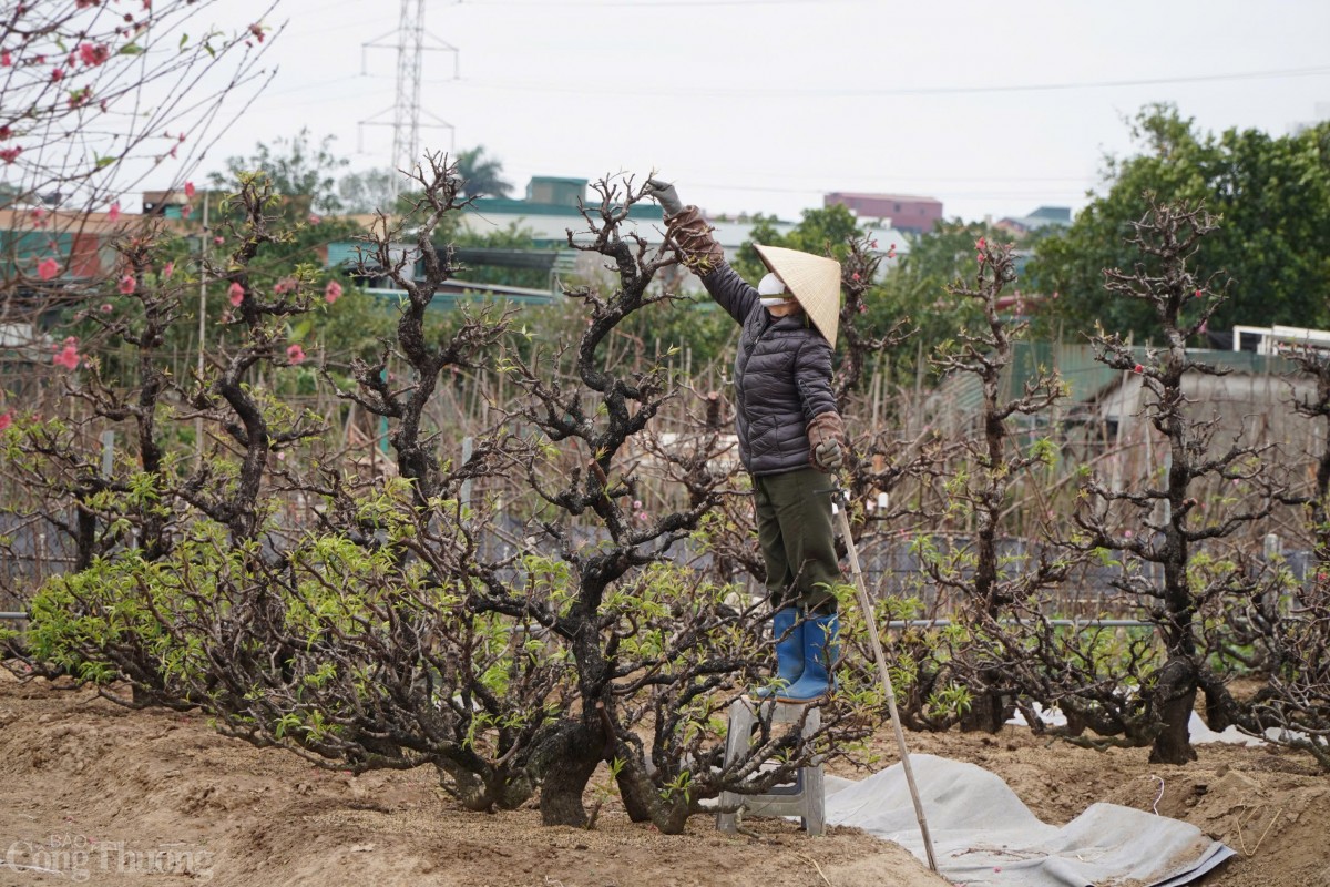 | Không khí làm việc miệt mài sau Tết tại làng đào Nhật Tân. |