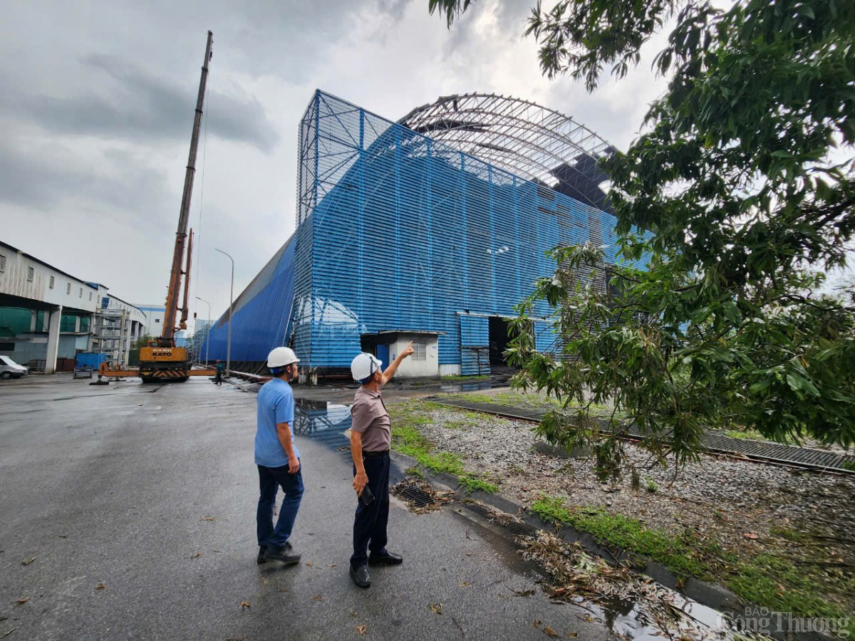 Cùng với thiệt hại về cây xanh, bão số 3 cũng làm hư hại một số hạng mục kết cấu mái che của khu vực kho than, một số tôn bảo ôn tại khu vực lọc bụi tĩnh điện, lọc khói bị bong tróc.