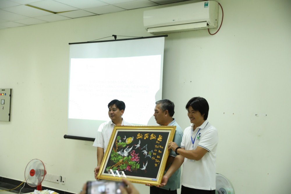 | Đoàn làm việc Lớp Trung cấp lý luận chính trị, hệ không tập trung - Khóa 7 mở tại Trung tâm Chính trị huyện Tuy Phong tặng quà lưu niệm Đại diện Nhà máy |