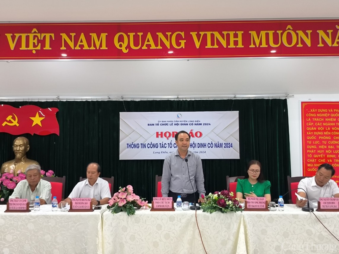 | UBND huyện Long Điền, tỉnh Bà Rịa - Vũng Tàu tổ chức họp báo thông tin về Lễ hội Dinh Cô năm 2024 - Ảnh: Nguyễn Ngọc |