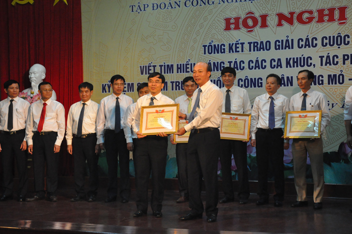 Chủ tịch HĐTV TKV - Lê Minh Chuẩn trao giải cho các Tập thể đạt giải A về Thi tìm hiểu 80 năm vùng Mỏ