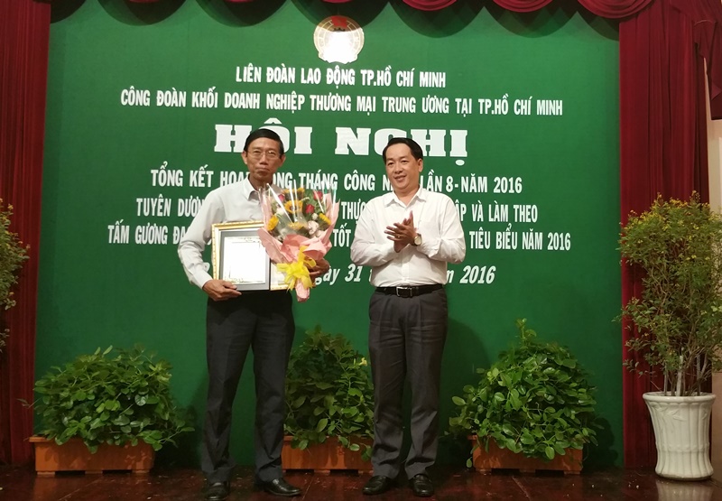 Tại hội nghị, Công đoàn khối Doanh nghiệp thương mại Trung ương tại TP. Hồ Chí Minh đã khen thưởng cho các tập thể, cá nhân thực hiện tốt học tập và làm theo tấm gương đạo đức Hồ Chí Minh; người tốt việc tốt; công nhân viên chức - lao động tiêu biểu năm 2016.