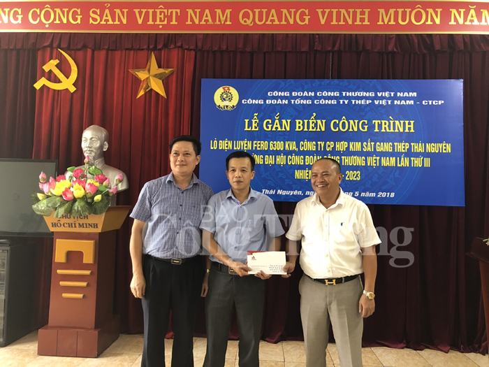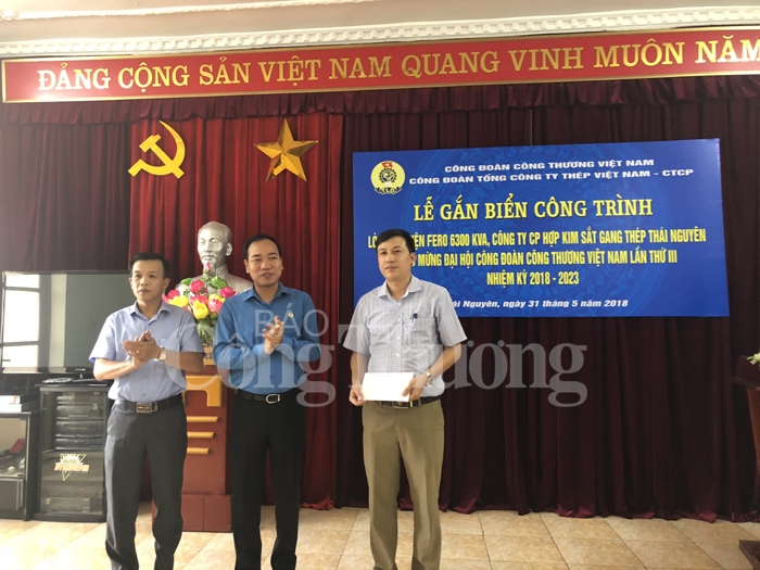 Cũng nhân dịp này, Công đoàn Gang thép Thái Nguyên cũng đã làm lễ gắn biển công trình lò fero 6300KVA của Công ty CP Hợp Kim Sắt chào mừng Đại hội III Công đoàn Công Thương Việt Nam nhiệm kỳ 2018 – 2023.