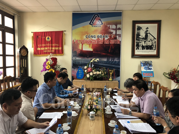 Tại buổi làm việc, đại diện Công đoàn Công ty Gang thép Thái Nguyên cho biết, thực hiện các chỉ thị hưởng ứng Tháng công nhân năm 2018 và hưởng ứng Tháng hành động về an toàn - vệ sinh lao động (ATVSLĐ) năm 2018, Công đoàn công ty đã tổ chức thực hiện công tác tuyên truyền, triển khai xây dựng các thiết chế phục vụ người lao động, triển khai hỗ trợ công nhân lao động, tổ chức nhiều phong trào thi đua…