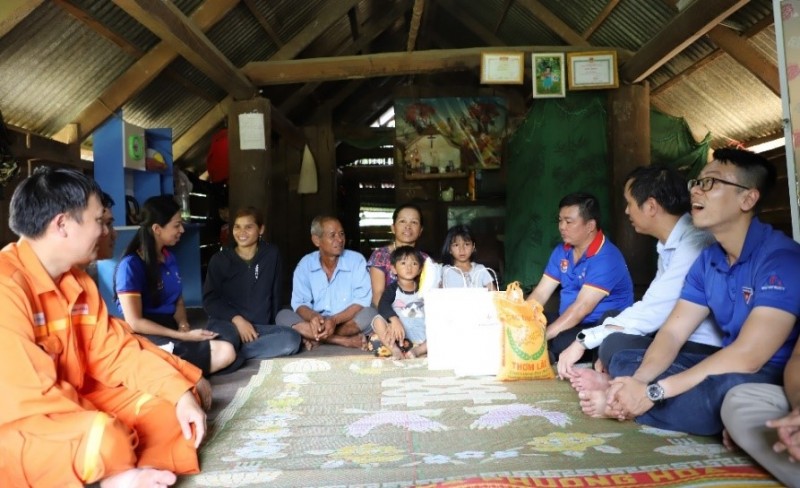 | Đoàn công tác đến thăm gia đình tại buôn kết nghĩa với Công ty Thủy điện Buôn Kuốp thuộc xã Nam Kar, huyện Lắk, tình Đắk Lắk |
