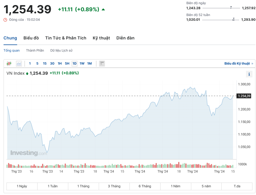 Nhiều mã cổ phiếu tăng trần giúp VN-Index lên mốc 1.254 điểm