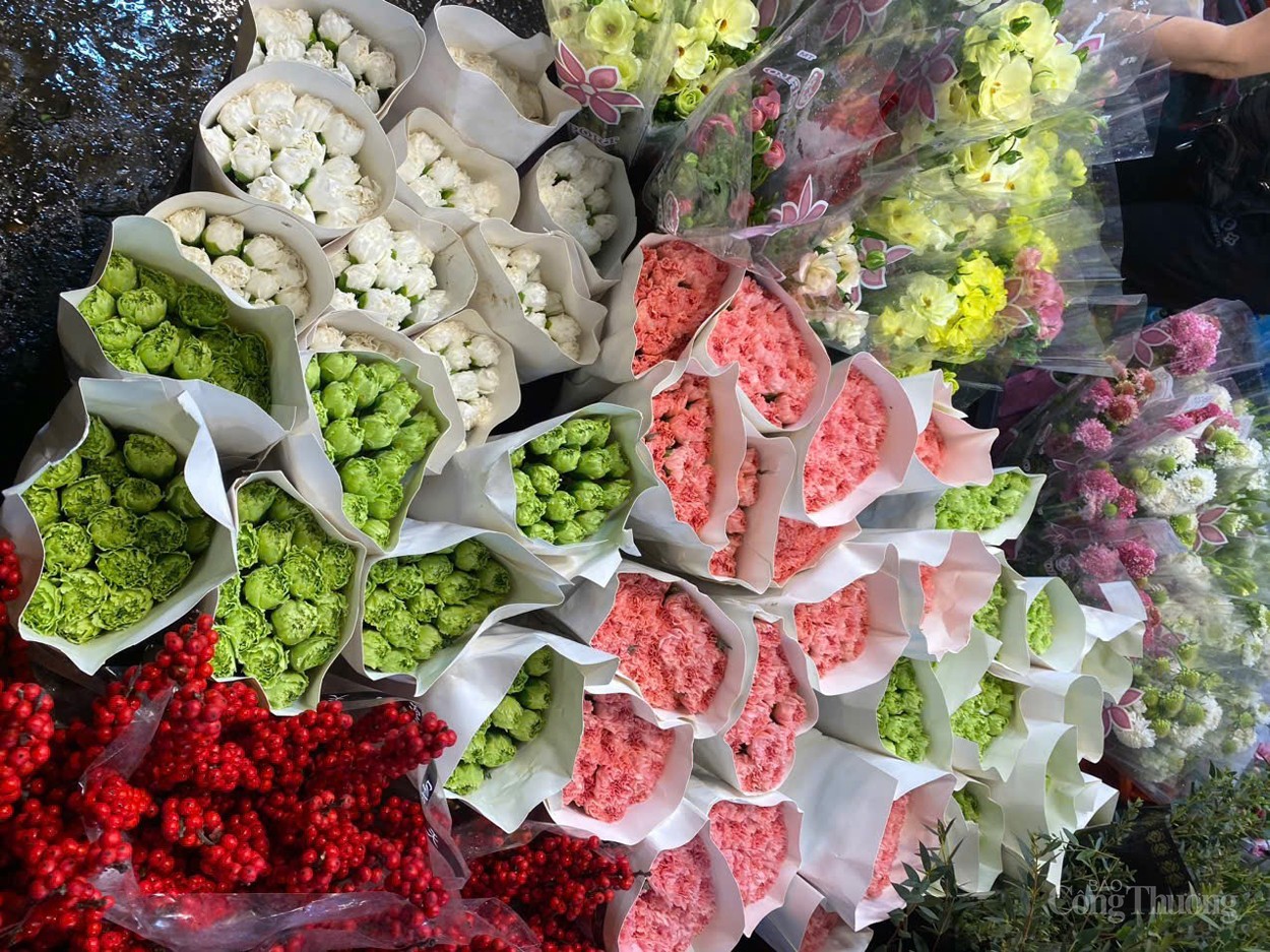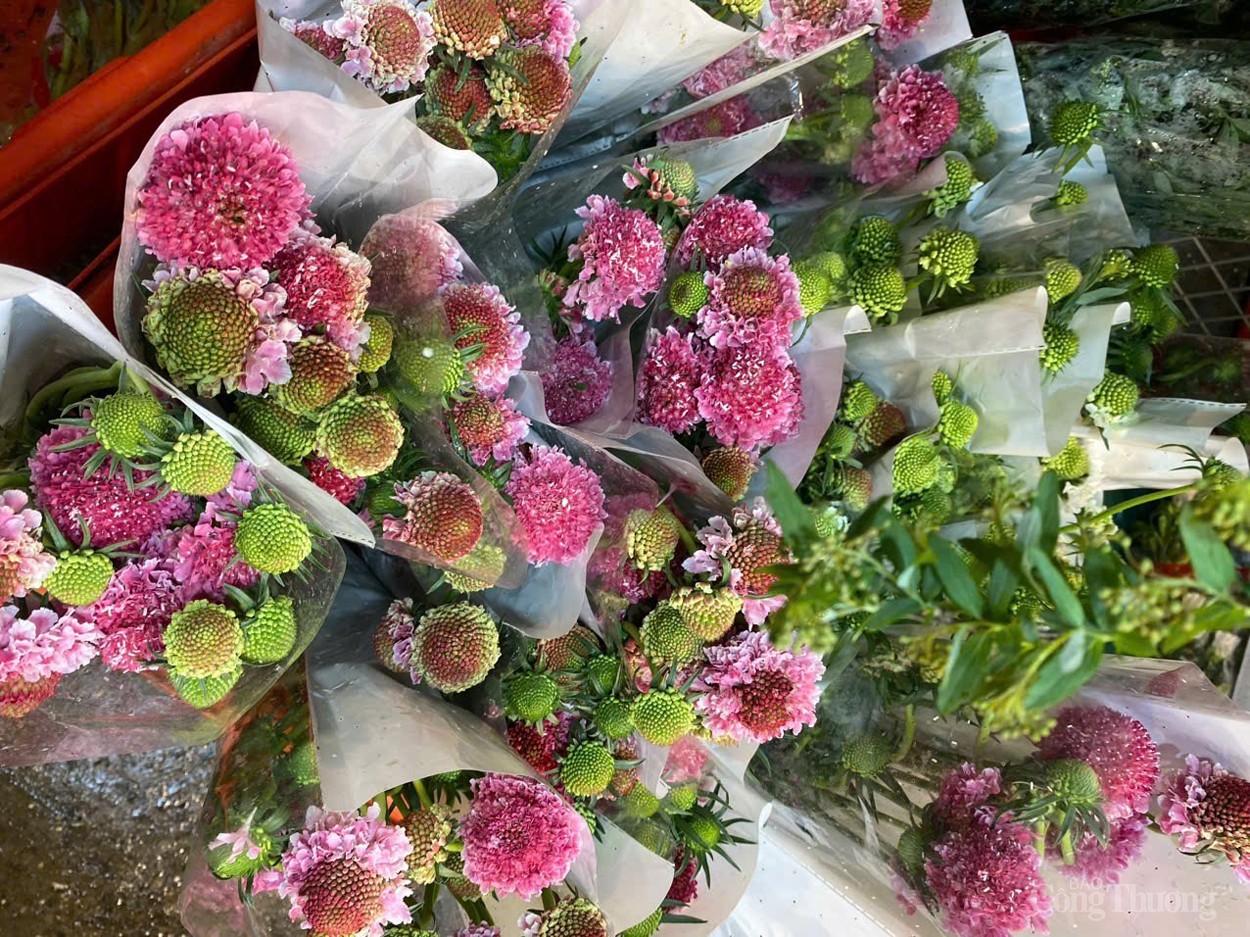 Chị Mai, chủ sạp hoa tại chợ hoa Quảng Bá, cho biết: “Năm nay, khách hàng chuộng loại hoa lạ, có màu sắc tươi sáng. Hoa Scabiosa hay cẩm chướng xanh là hoa nhập khẩu châu Âu, giá cao một chút nhưng rất hút khách”.