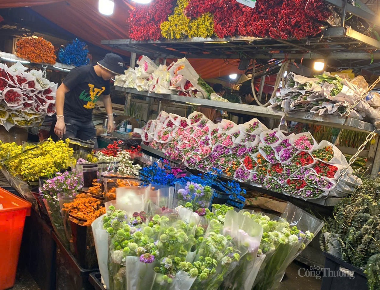 | Nhiều loài hoa đẹp có màu sắc bắt mắt được bày bán tại chợ |
