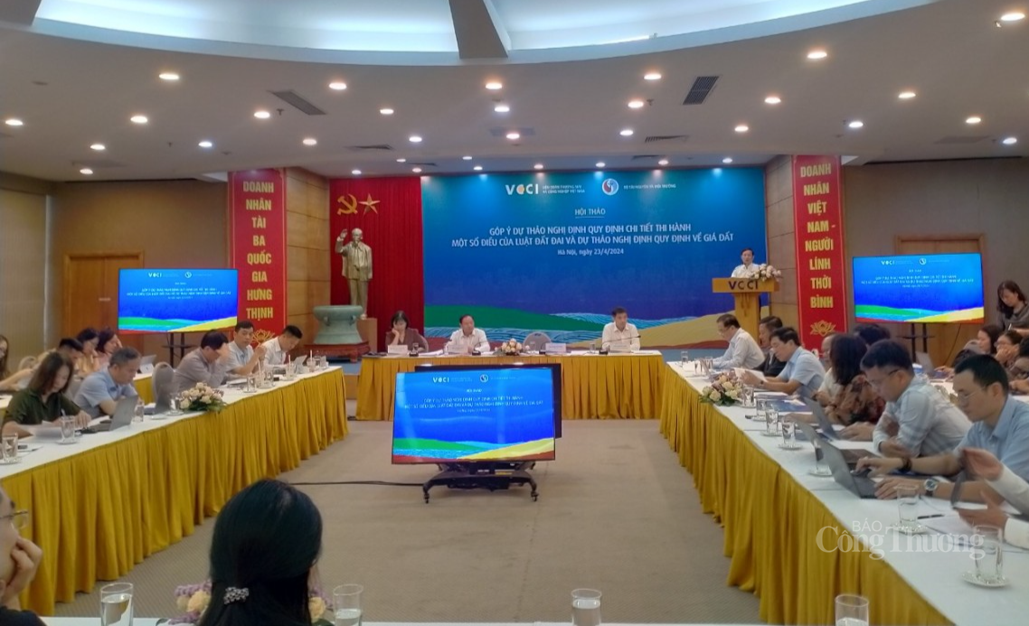 | Liên đoàn Thương mại và Công nghiệp Việt Nam (VCCI) và Bộ Tài nguyên và Môi trường phối hợp tổ chức Hội thảo góp ý Dự thảo Nghị định quy định chi tiết thi hành một số điều của Luật Đất đai và Dự thảo Nghị định quy định về giá đất |