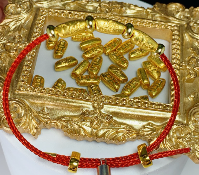 | Vòng tay chỉ đỏ mic charm vàng 10k một đồng xu kim tiền |