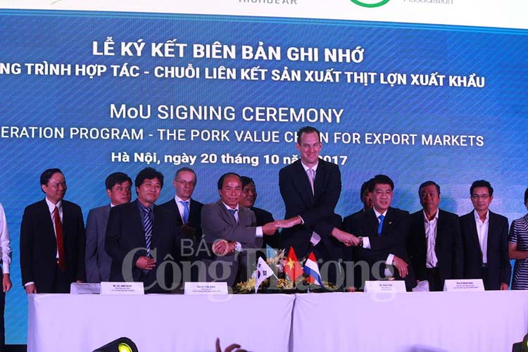 Trong dịp này, Câu lạc bộ Nông nghiệp công nghệ cao, Tập đoàn De Heus, Công ty CP và Đầu tư thương mại Biển Đông cùng Công ty máy móc Daewon đã ký kết thoả thuận thực hiện liên kết chuỗi sản xuất thịt lợn sạch để XK. Sự tham gia ký kết này mở ra một hướng đi chung trong chiến lược phát triển của các bên với mục đích mang lại cho cộng đồng chuỗi giá trị cung ứng thịt heo sạch, an toàn hướng đến XK.