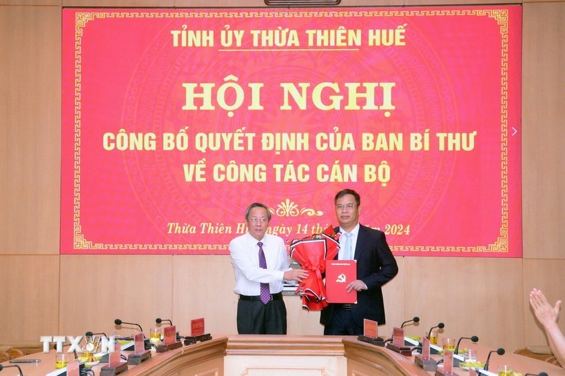 Sáng 14/9, tại Hội nghị công bố quyết định của Ban Bí thư về công tác cán bộ do Tỉnh ủy Thừa Thiên - Huế tổ chức, Ủy viên Trung ương Đảng, Phó Trưởng ban Thường trực Ban Tổ chức Trung ương Hoàng Đăng Quang công bố và trao Quyết định số 1513-QĐNS/TW ngày 27/8/2024 của Ban Bí thư về nhân sự.