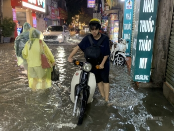 | Trận mưa lớn kéo dài nhiều giờ khiến các tuyến phố Hà Nội bị ngập cục bộ |