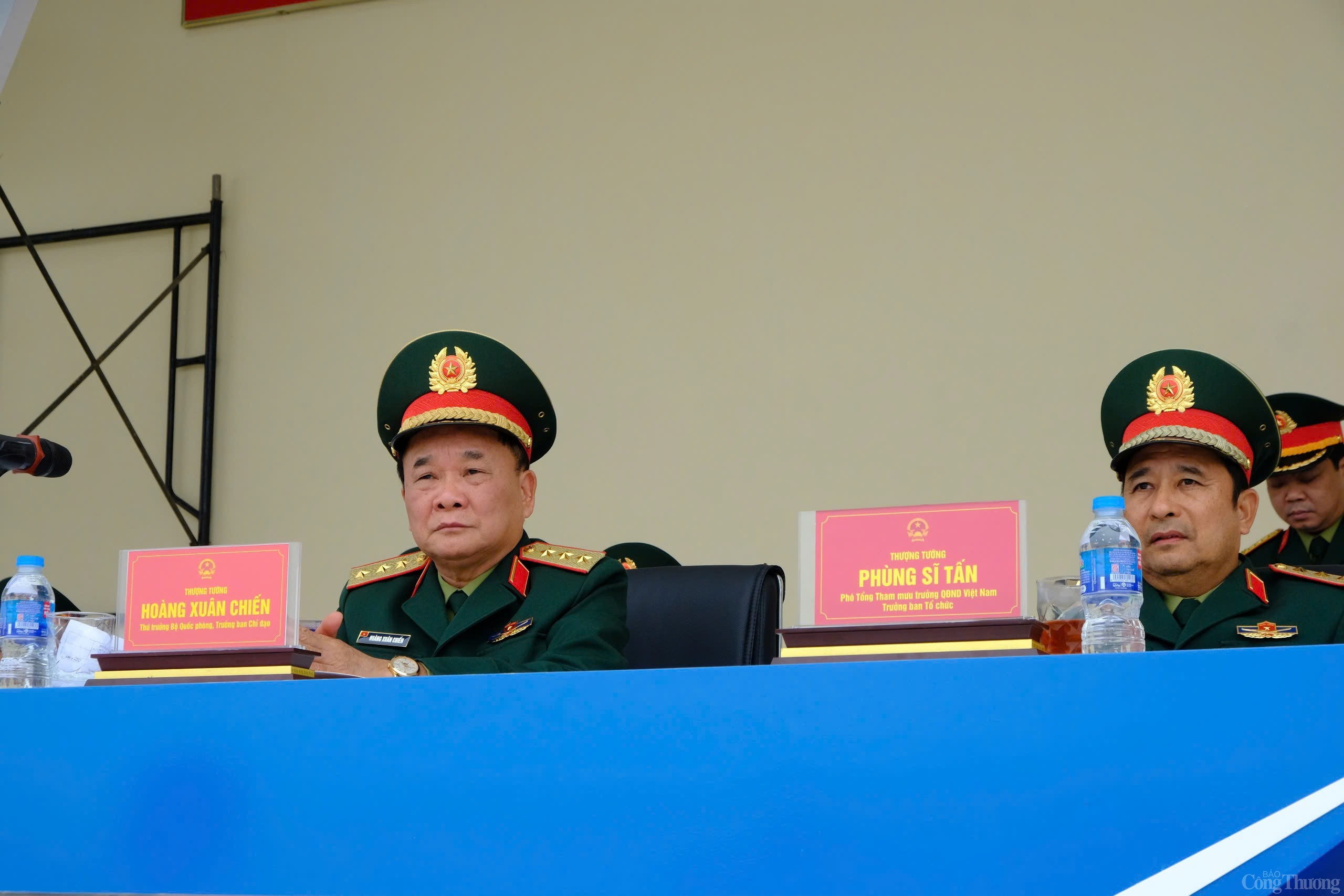 | Thượng tướng Hoàng Xuân Chiến và Thượng tướng Phùng Sĩ Tấn theo dõi buổi tổng duyệt |