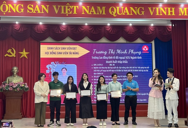 | Ban tổ chức trao học bổng VALOMA cho các em sinh viên tài năng và vượt khó. |