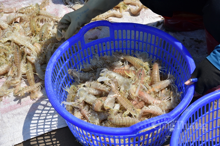 | Nhanh chóng đưa tôm cá lên xe đi tiêu thụ |