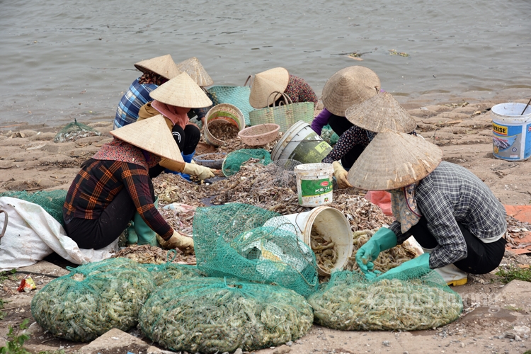 | Trao đổi mua bán hàng hải sản ngay mép nước |