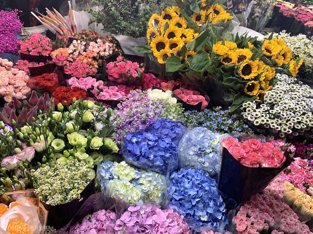 | Đa dạng các loại hoa như hoa hồng, hoa ly, thanh liễu, tulip hay hướng dương từ bình dân đến cao cấp được bày bán khắp các sạp hàng |