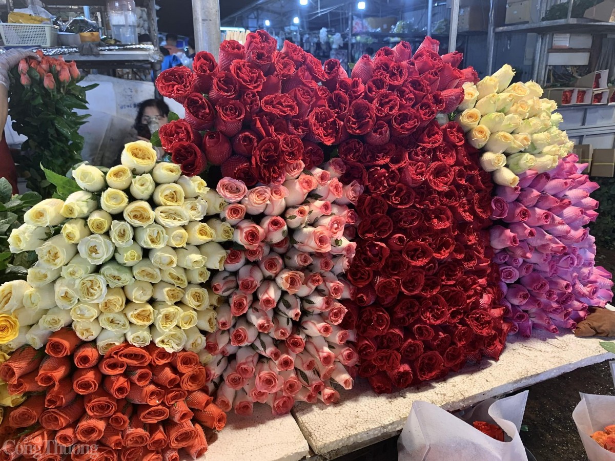 Ngoài hoa hồng trong nước được trồng từ làng hoa Tây Tựu hay Đà Lạt, chợ còn có nhiều loại hồng khác được nhập từ nước ngoài bọc trong bìa giấy có giá thành cao hơn.
