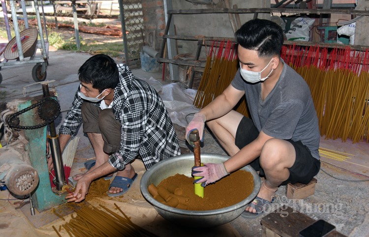 Để ra được thành phẩm đến tay người tiêu dùng, mỗi nén hương đều đặt trọn tâm huyết của người thợ. Từ khâu vót tăm, nhuộm chân, se hương đến phơi khô, đóng gói đều đòi hỏi sự tỉ mỉ và cẩn thận - chủ cơ sở sản xuất Thắng Bình chia sẻ. Tùy từng loại hương, người làm nghề sẽ lựa chọn nguyên liệu phù hợp. Thường hương được làm từ trầm, tùng, trắc, bạch chỉ, hoắc hương, hoa hồi, quế chi, nhựa cây trám, củ, rễ cây hương bài, than xoan...