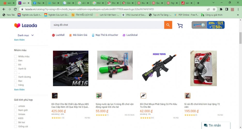 | Đồ chơi hình dạng súng cũng được rao bán công khai trên các sàn thương mại điện tử |