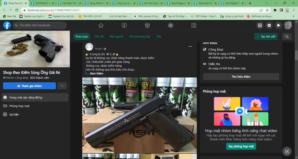 Để tránh sự phát hiện của lực lượng chức năng, các đối tượng buôn bán vũ khí triệt để lợi dụng tính ẩn danh của không gian mạng, sử dụng đa dạng các dịch vụ trực tuyến, để thực hiện hành vi phạm tội. Các đối tượng lập hàng ngàn trang web, tài khoản mạng xã hội, các hội nhóm kín và công khai trên mạng xã hội để quảng cáo, mua bán trái phép vũ khí, vật liệu nổ, công cụ hỗ trợ, pháo kèm theo số điện thoại liên hệ.