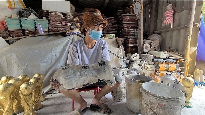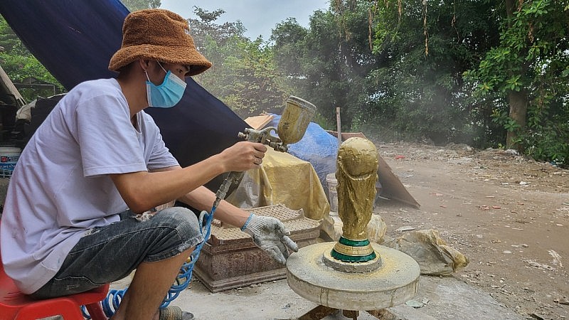 Những chiếc "cúp vàng World Cup 2022 Made in Vietnam" được làm tại Bát Tràng.