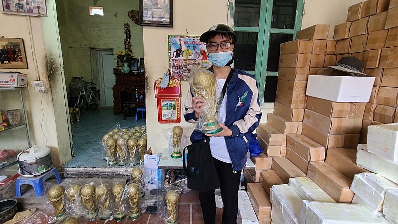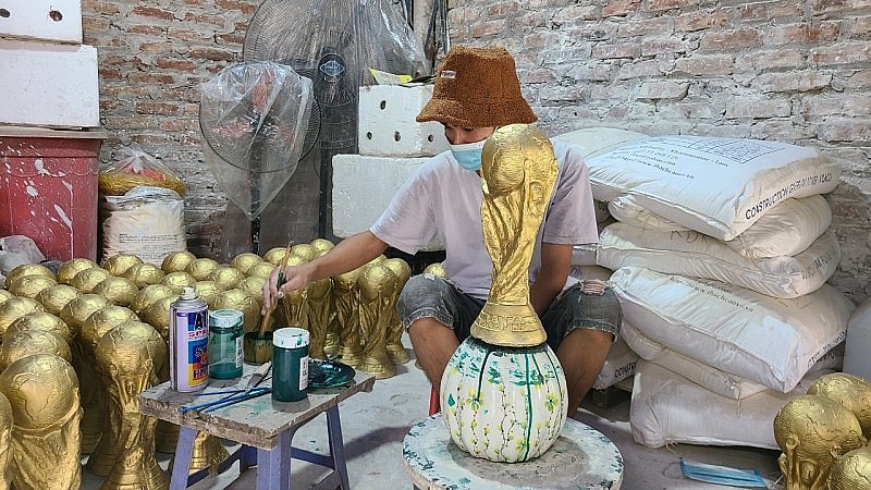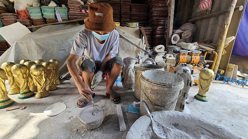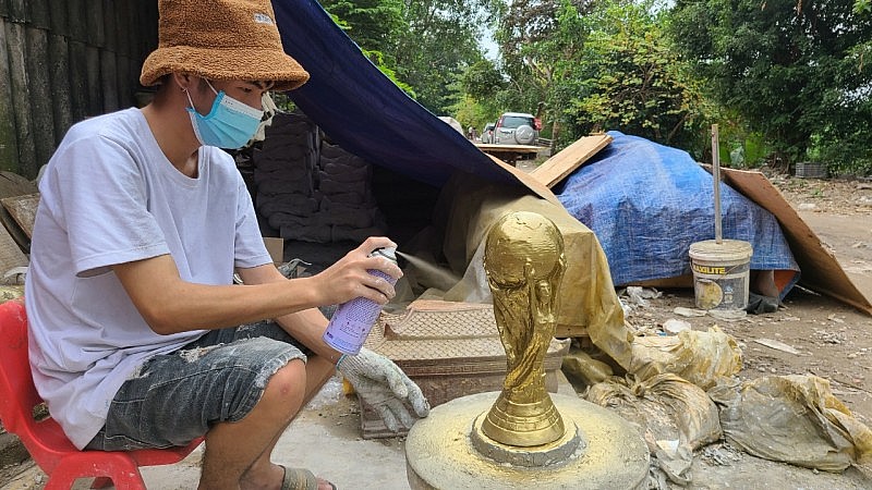 Trước thềm World Cup 2022, hàng nghìn chiếc cúp vàng được các cơ sở sản xuất gốm tại làng Bát Tràng tung ra thị trường để phục vụ những người hâm mộ bóng đá trên khắp mọi miền Tổ quốc.
