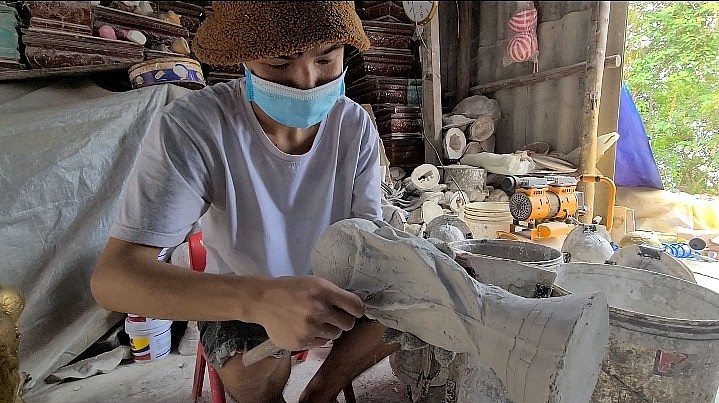 Đợi thạch cao khô lại và thành hình trong khoảng thời gian từ 10-15 phút, người thợ có thể tháo được khuôn, cắt gọt các chi tiết thừa và đem phơi khô