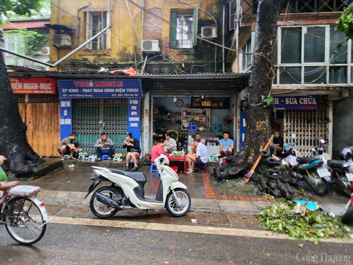 | Sau bão cuộc sống trở lại bình thường, thói quen ngồi vỉa hè ăn sáng của người dân sống tại Hà Nội dường như không vì cây đổ gãy, môi trường chưa được dọn dẹp sạch sẽ mà thay đổi. |