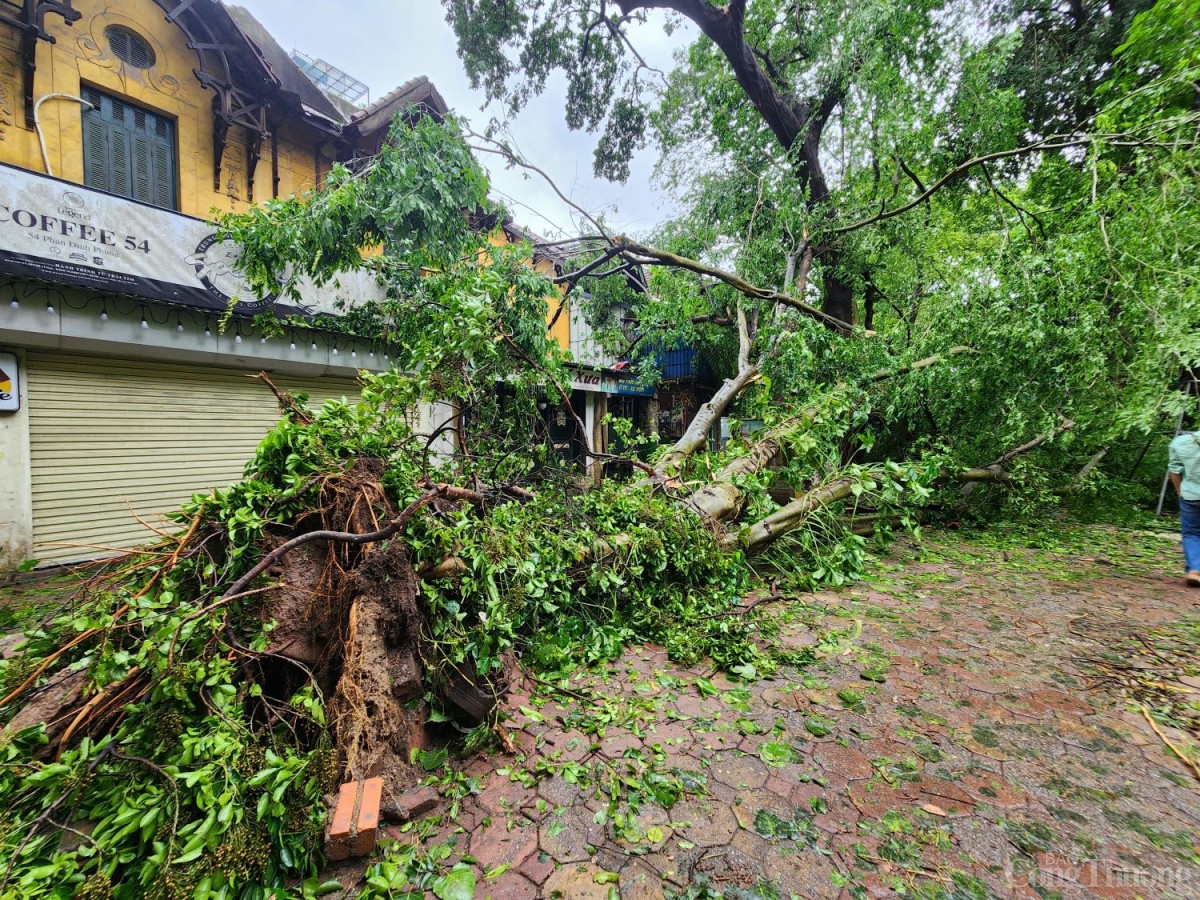| Một cây cổ thụ bật gốc trước số nhà 54 phố Phan Đình PHùng |